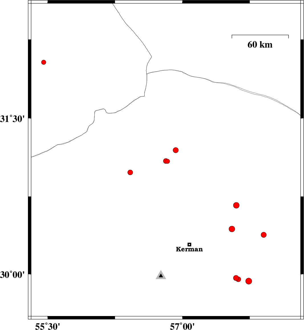 | 2015/09/03 | 07:22:40.1 | 11:52:40.1 | 30.381 | 57.905 | 14 | ML2.7 | Kerman Province, 80 km -East of Kerman | ||