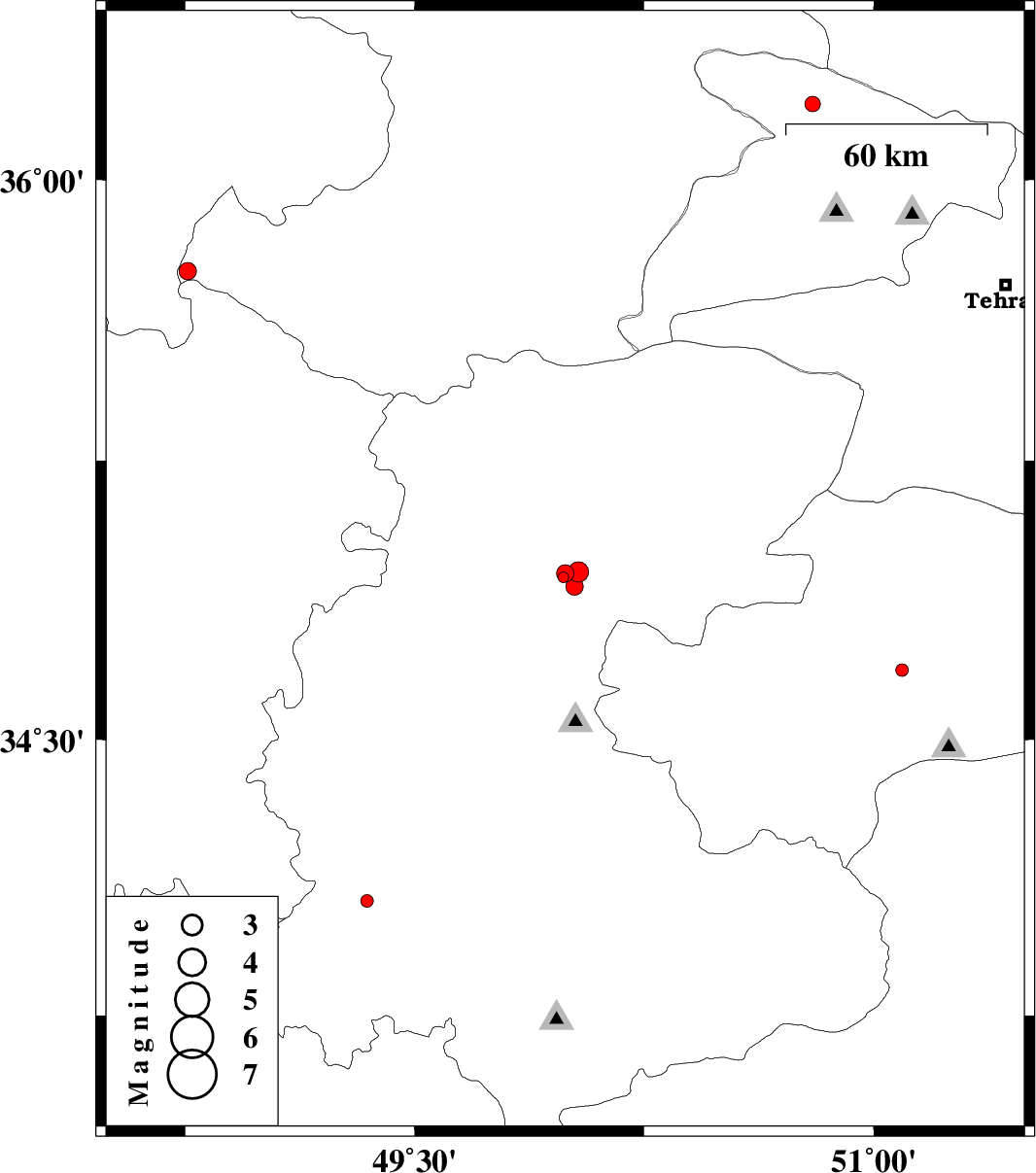 | 2015/08/31 | 16:27:38.3 | 20:57:38.3 | 36.2 | 50.8 | 6 | ML2.3 | Tehran Province, 29 km North-East of Hashtgerd | ||
