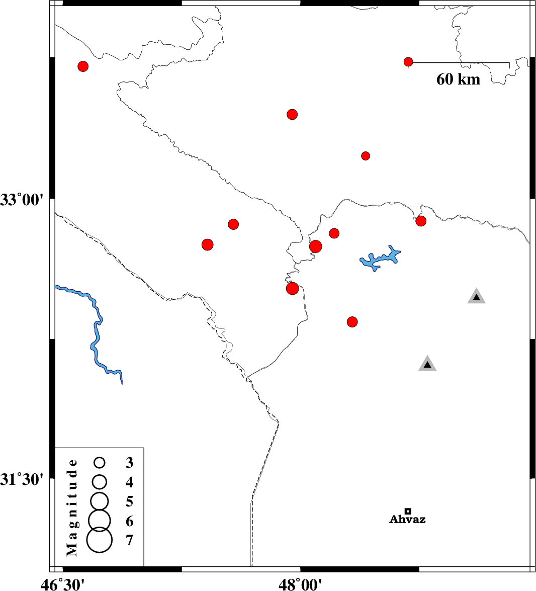 | 2015/08/25 | 18:58:18.7 | 23:28:18.7 | 32.863 | 47.576 | 14 | ML2.9 | Ilam Province, 13 km -East of Abdanan | ||