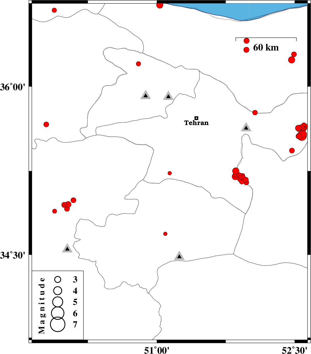 | 2015/08/25 | 18:03:16.7 | 22:33:16.7 | 35.619 | 52.54 | 14 | ML2 | Tehran Province, 25 km South-West of Firuzkuh | ||