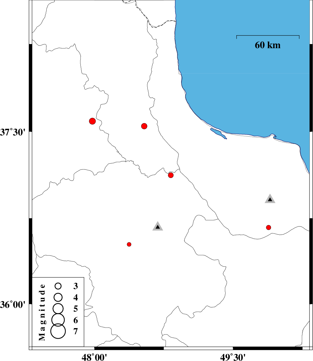 | 2015/09/10 | 11:25:59.3 | 15:55:59.3 | 36.522 | 48.376 | 6 | ML2 | Zanjan Province, 14 km of Zarrinabad | ||