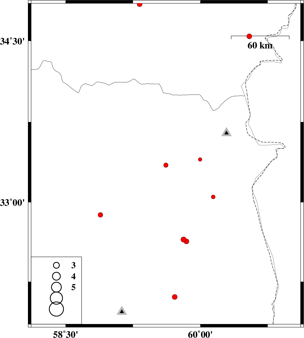 | 2015/09/05 | 00:35:17.2 | 05:05:17.2 | 32.88 | 58.888 | 16 | ML2.4 | Khorasan(south) Province, 32 km -West of Birjand | ||