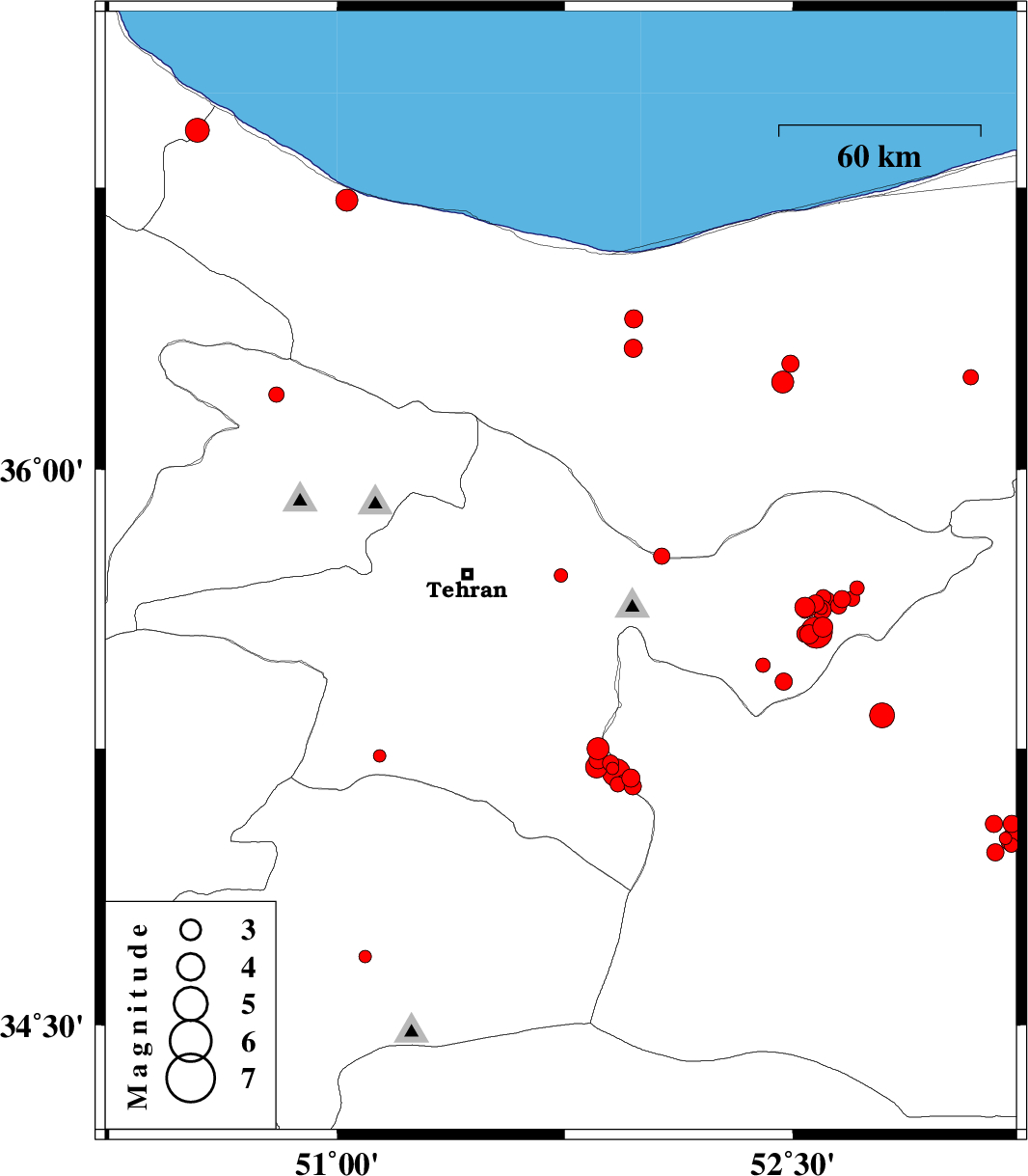| 2015/08/31 | 16:27:38.3 | 20:57:38.3 | 36.2 | 50.8 | 6 | ML2.3 | Tehran Province, 29 km North-East of Hashtgerd | ||