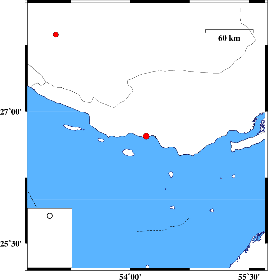 | 2015/09/18 | 01:10:42.9 | 05:40:42.9 | 26.72 | 54.202 | 15 | ML3.5 | Hormozgan Province, 55 km South-West of Bastak | ||