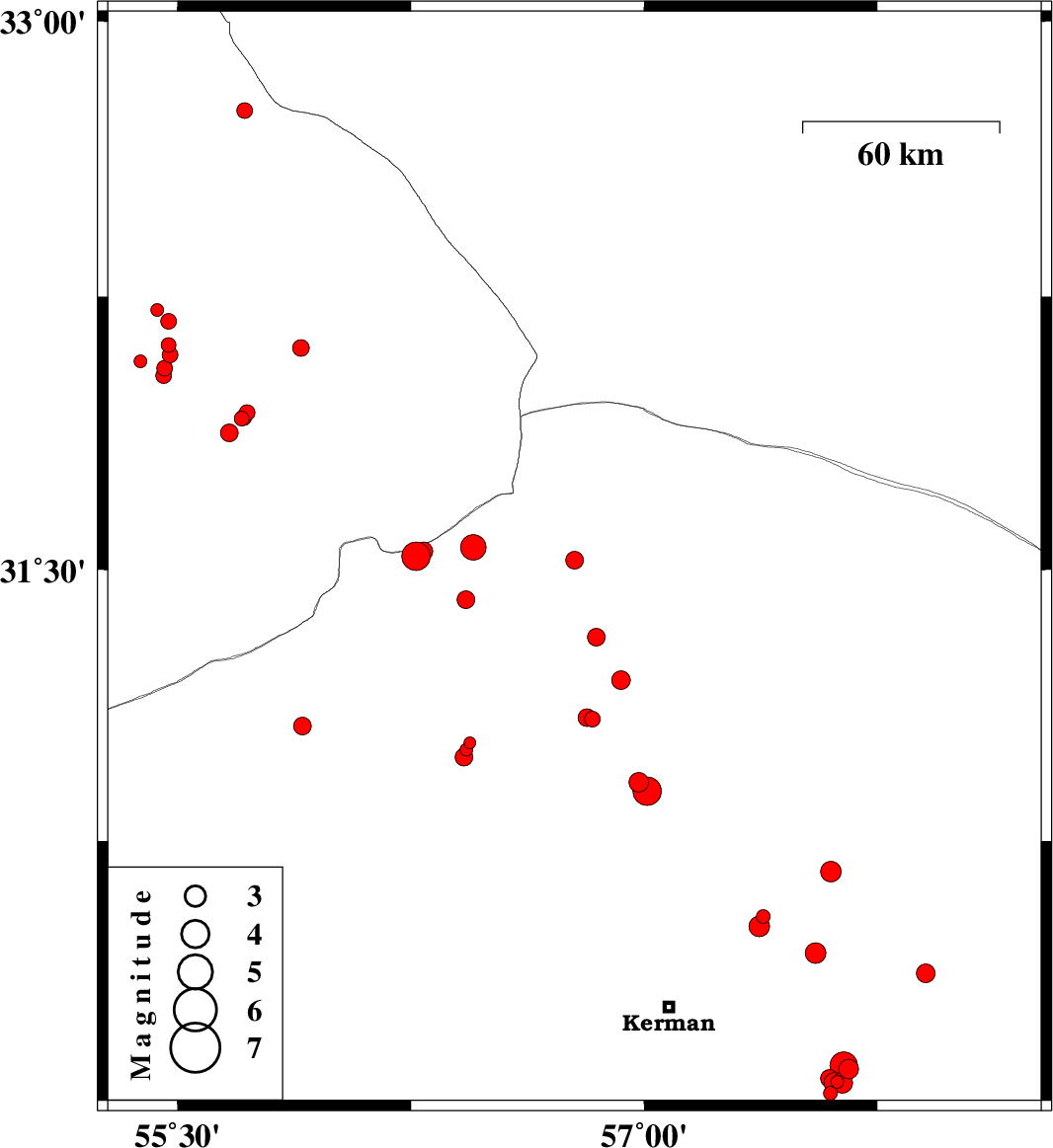 | 2015/09/16 | 22:03:54.1 | 02:33:54.1 | 30.539 | 57.383 | 14 | ML2 | Kerman Province, 40 km North-East of Kerman | ||