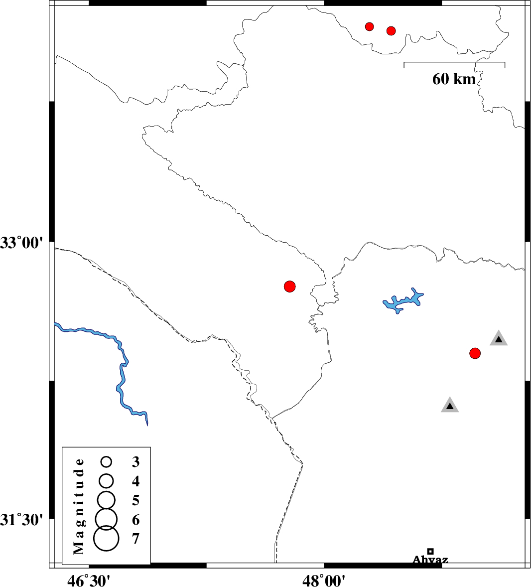 | 2015/09/14 | 23:38:13.8 | 04:08:13.8 | 32.399 | 48.962 | 37 | ML3.1 | Khoozestan Province, 14 km -West of Lali | ||