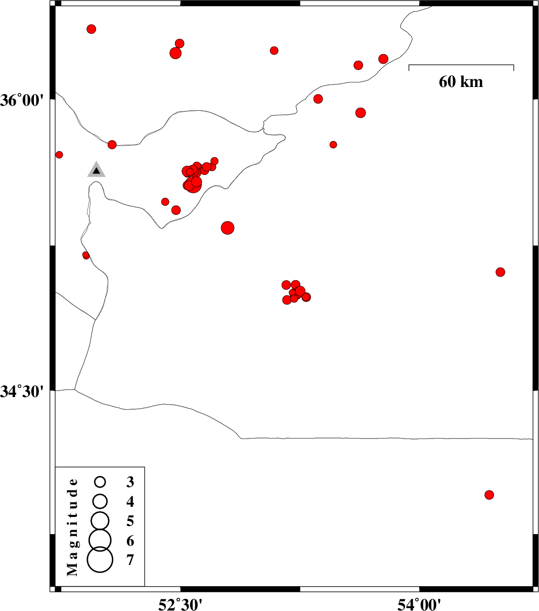 | 2015/09/05 | 07:08:20.0 | 11:38:20.0 | 34.969 | 53.167 | 17 | ML2.6 | Semnan Province, 70 km South-West of Semnan | ||