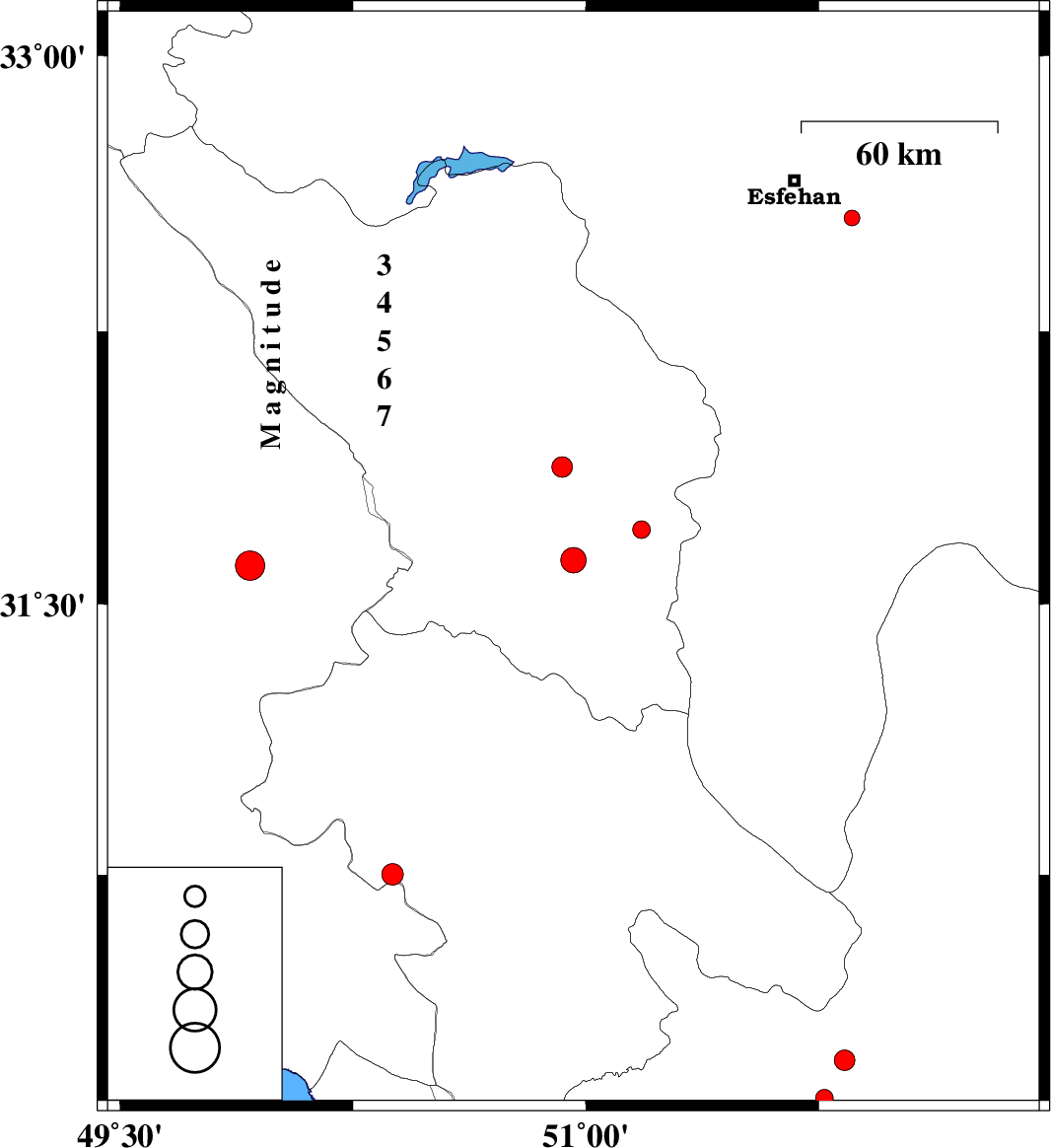| 2015/09/20 | 13:28:48.8 | 17:58:48.8 | 32.559 | 51.857 | 14 | ML2.3 | Esfahan Province, 21 km South-East of Esfahan | ||
