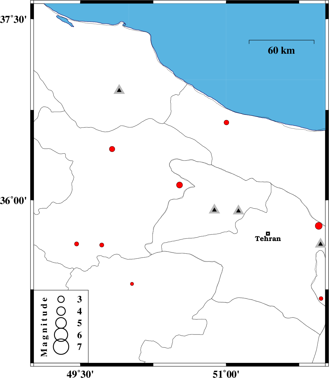 | 2015/09/19 | 23:00:11.8 | 03:30:11.8 | 36.646 | 51.002 | 6 | ML2.3 | Mazandaran Province, 21 km South-East of Tonekabon | ||