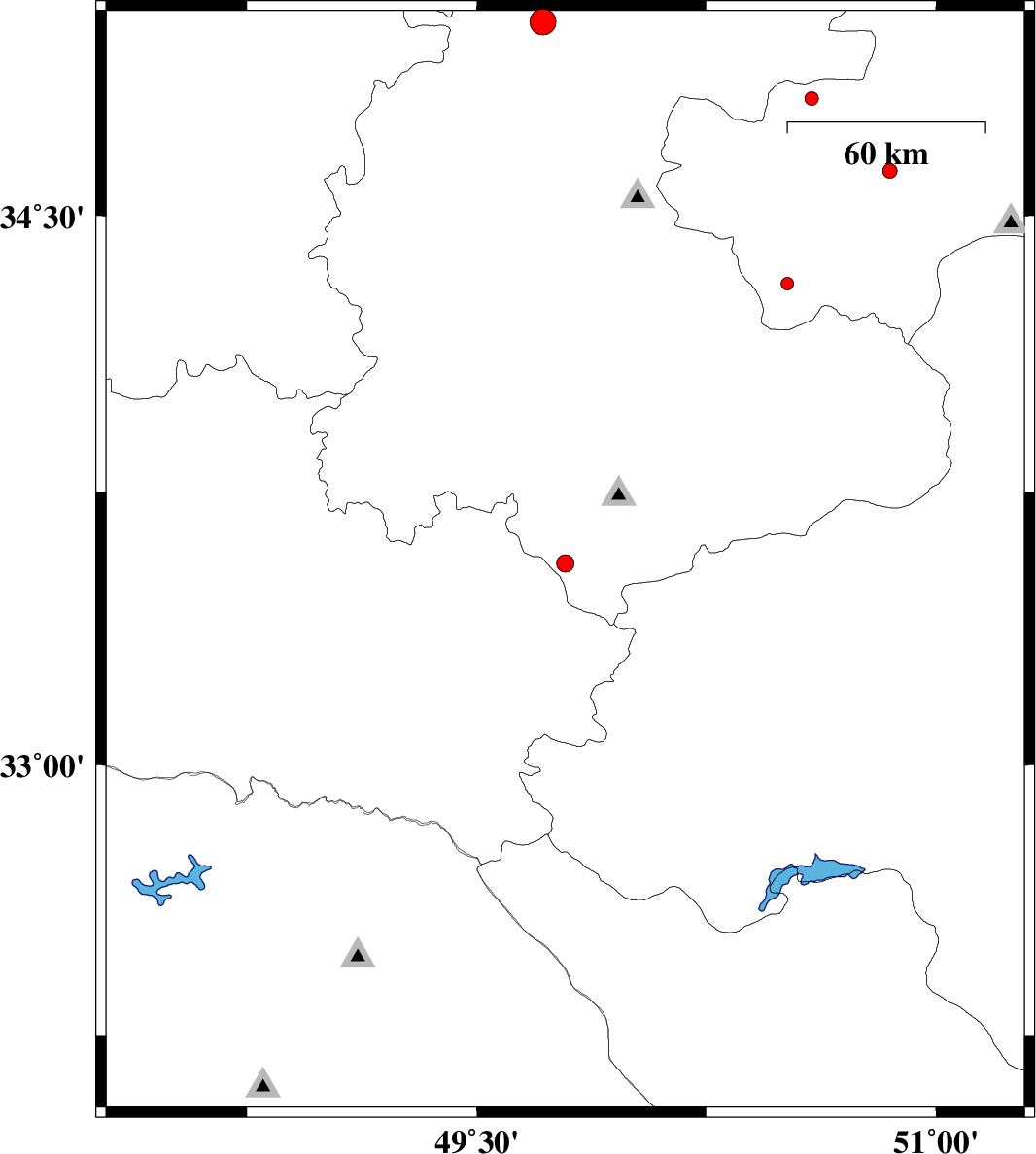 | 2015/09/28 | 01:04:18.6 | 04:34:18.6 | 34.816 | 50.594 | 15 | ML2 | Qom Province, 31 km North-West of Qom | ||