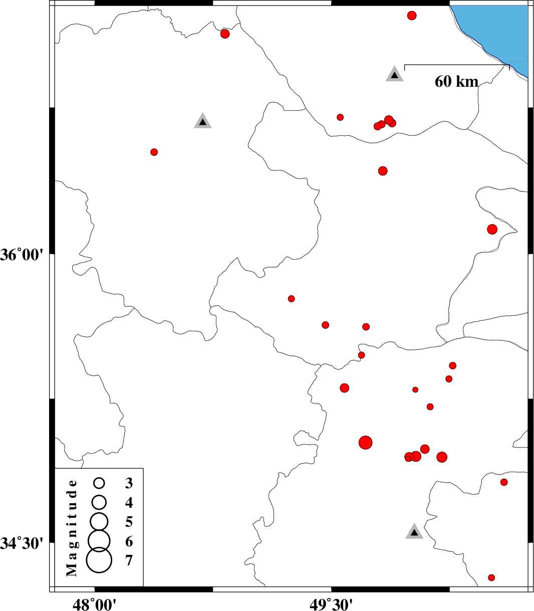| 2015/10/03 | 15:26:18.2 | 18:56:18.2 | 36.685 | 49.863 | 14 | ML2.6 | Gilan Province, 52 km South of Siahkal | ||