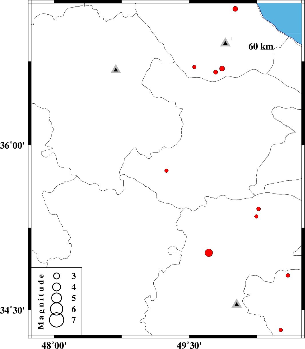 | 2015/10/03 | 15:26:18.2 | 18:56:18.2 | 36.685 | 49.863 | 14 | ML2.6 | Gilan Province, 52 km South of Siahkal | ||