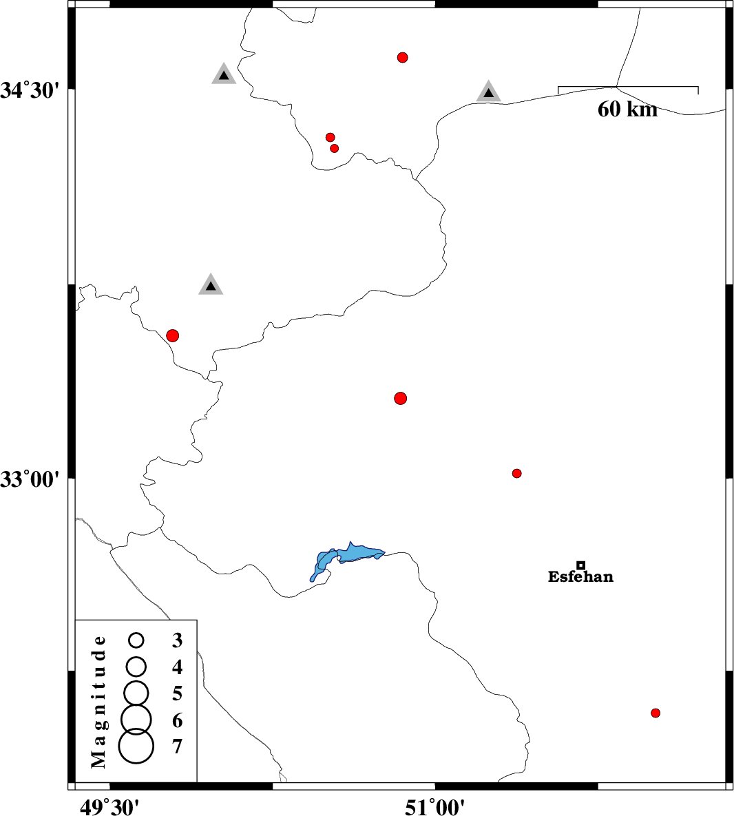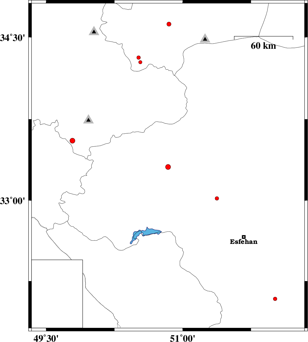 | 2015/10/01 | 13:13:01.5 | 16:43:01.5 | 33.019 | 51.375 | 14 | ML1.9 | Esfahan Province, 29 km North-West of Shahinshahr | ||