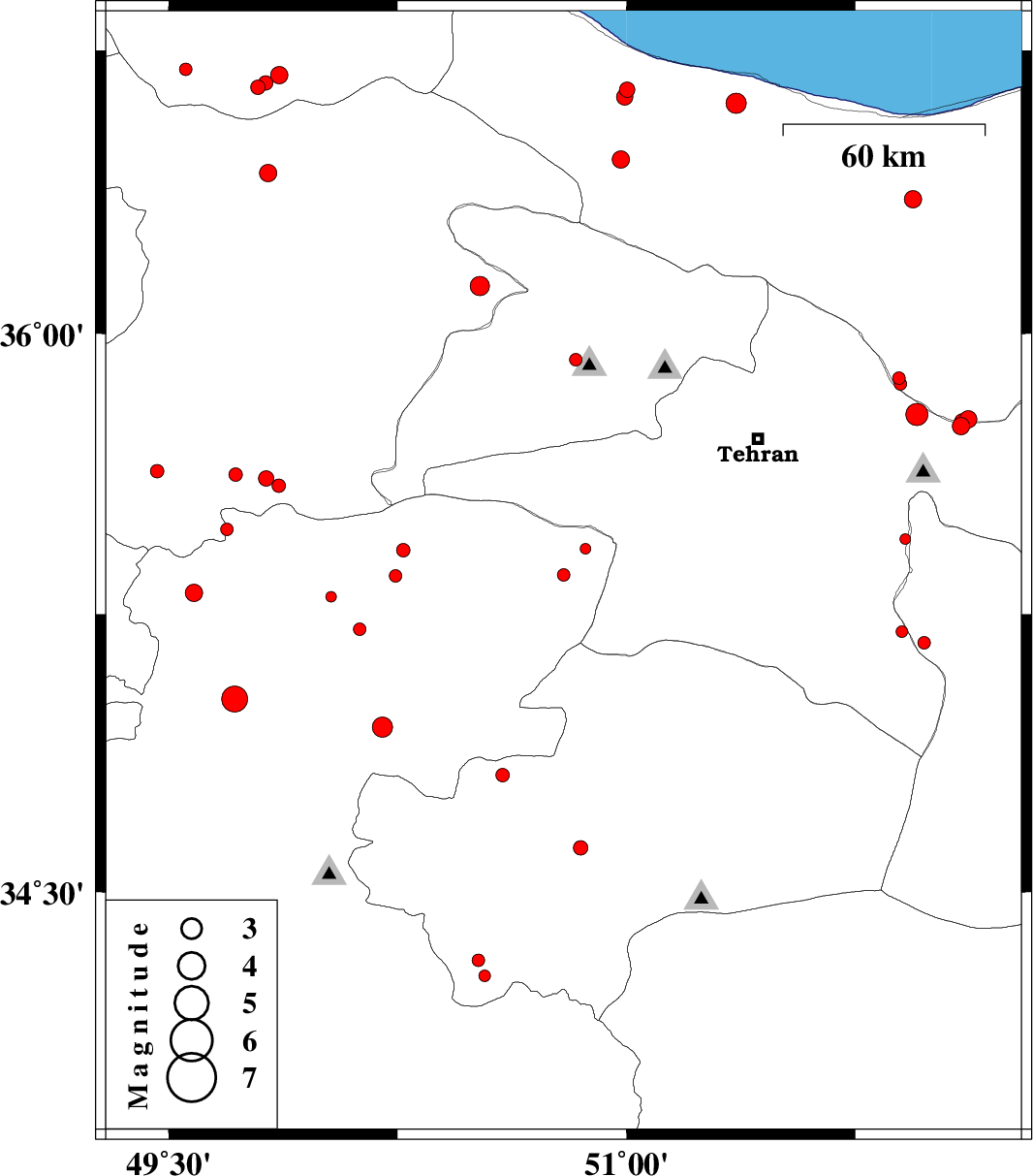 | 2015/09/21 | 09:00:50.3 | 13:30:50.3 | 35.784 | 51.952 | 15 | ML3.2 | Tehran Province, 13 km -West of Damavand | ||