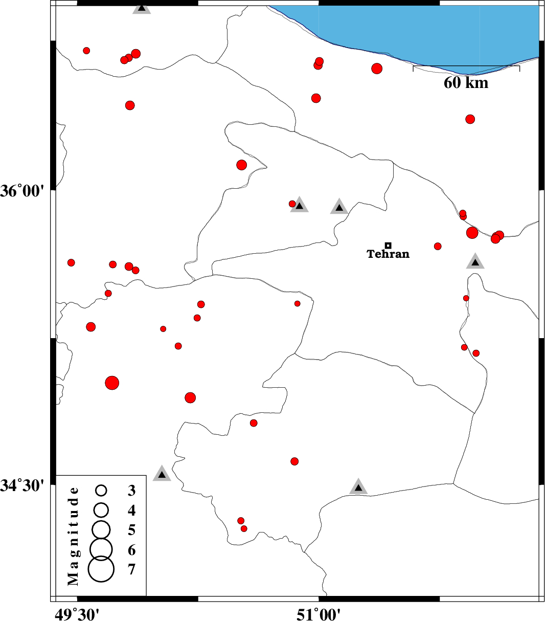 | 2015/09/21 | 09:00:50.3 | 13:30:50.3 | 35.784 | 51.952 | 15 | ML3.2 | Tehran Province, 13 km -West of Damavand | ||