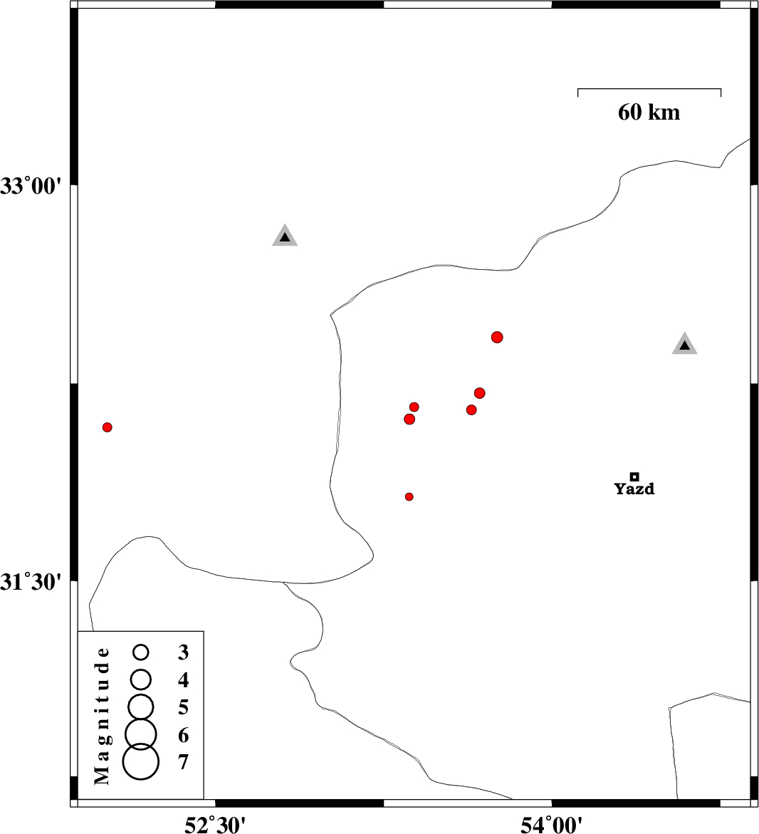 | 2015/09/24 | 11:49:31.9 | 15:19:31.9 | 32.116 | 53.364 | 6 | ML2.1 | Yazd Province, 63 km South-West of Meybod | ||