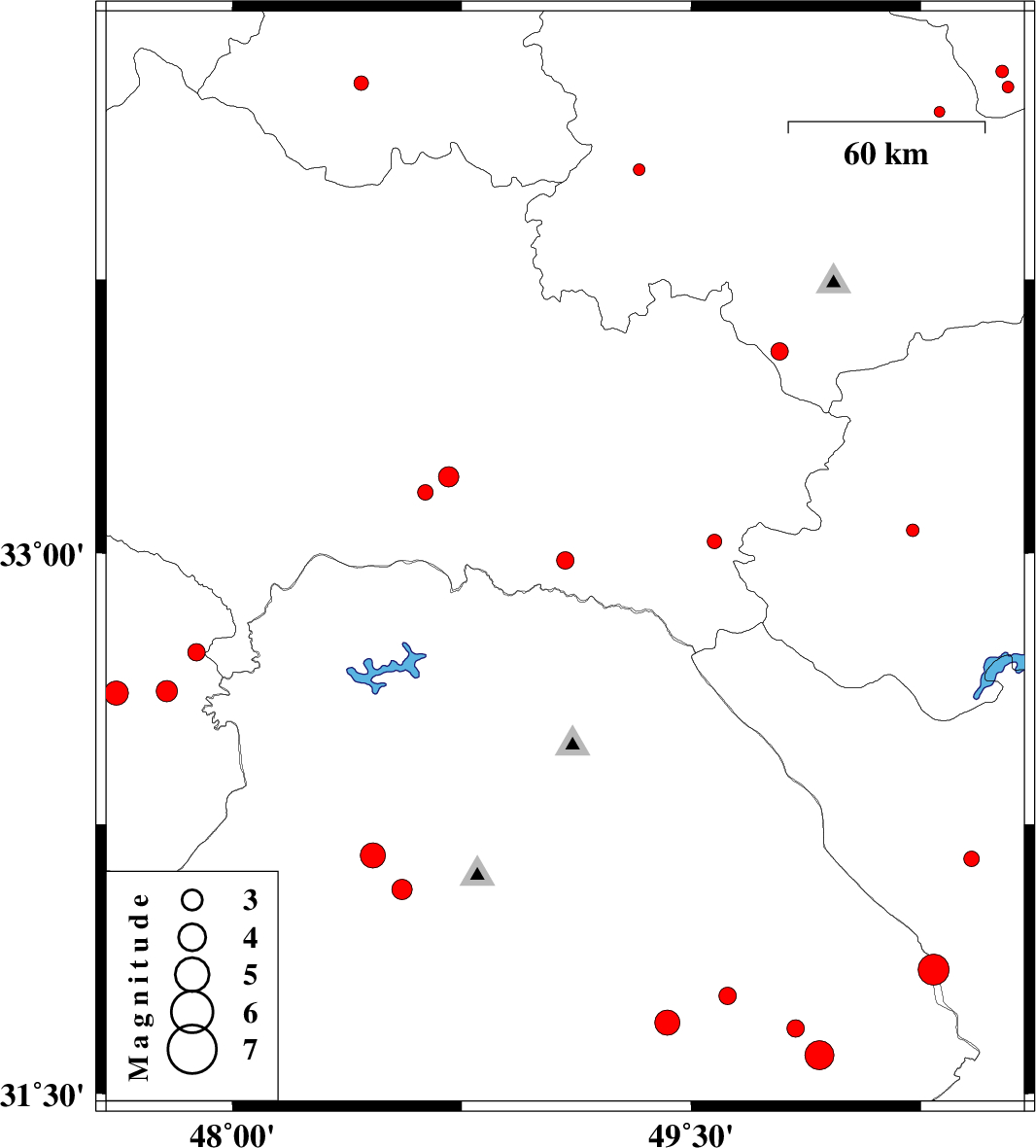| 2015/10/05 | 20:23:58.3 | 23:53:58.3 | 32.154 | 50.416 | 14 | ML2.2 | Chaharmahal Bakhtiari Province, 18 km South-West of Farsan | ||