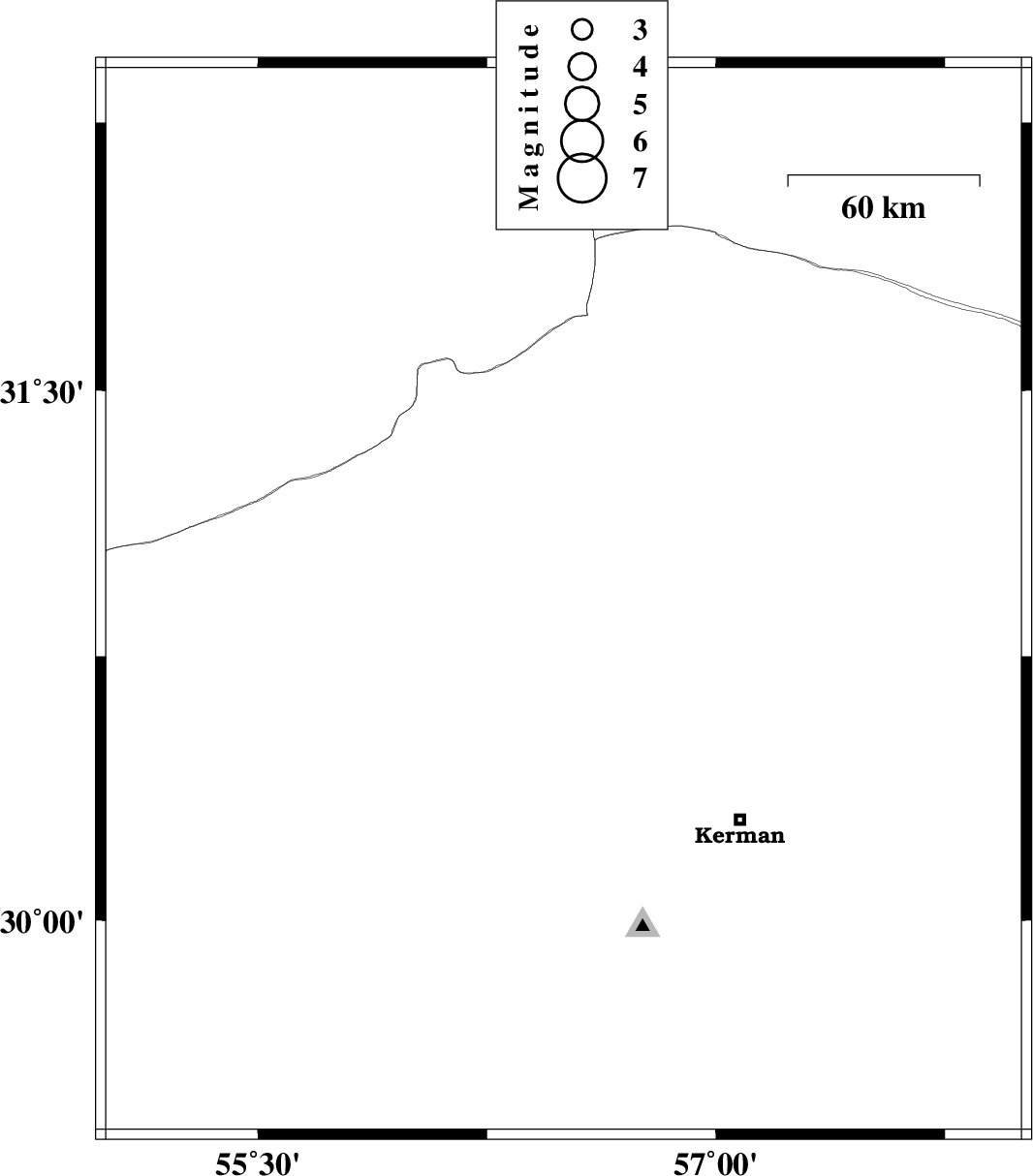 | 2015/10/03 | 12:00:10.9 | 15:30:10.9 | 29.906 | 57.584 | 14 | ML3 | Kerman Province, 65 km South-East of Kerman | ||