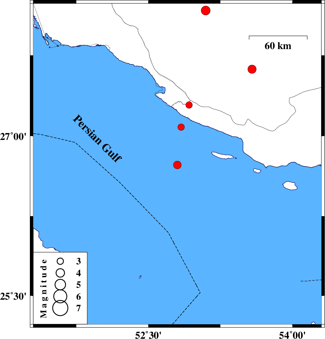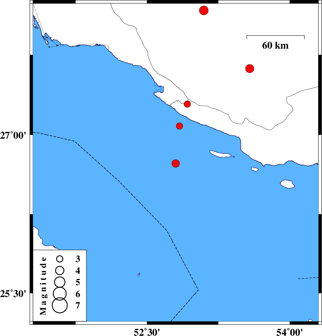 | 2015/11/11 | 11:20:00.4 | 14:50:00.4 | 27.083 | 52.842 | 15 | ML3.1 | Persian Gulf, 52 km South of Mehr | ||