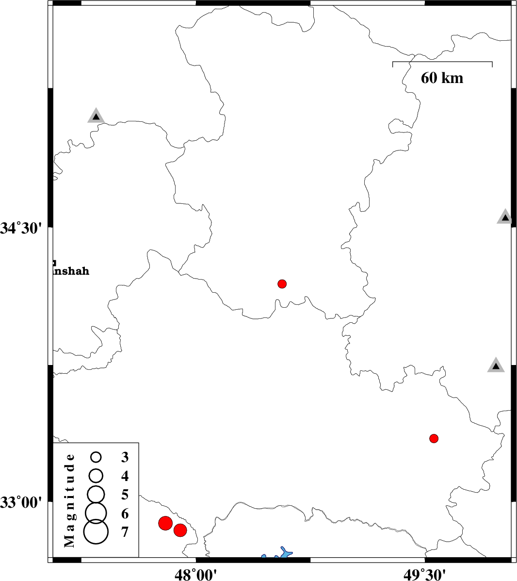 | 2015/11/21 | 19:01:59.4 | 22:31:59.4 | 32.881 | 47.8 | 14 | ML4.1 | Ilam Province, 31 km South of Pol-e dokhtar |
