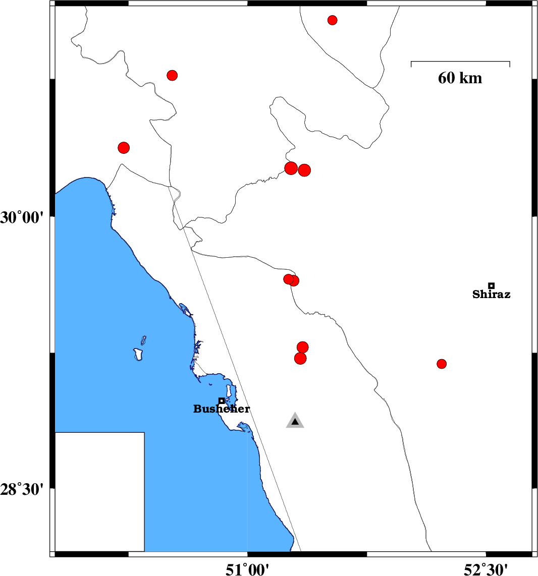 2015/11/30 12:49:52.1 16:19:52.1 29.64751.28814 ML3.1 Bushehr Province, 35 km -West of Kazerun