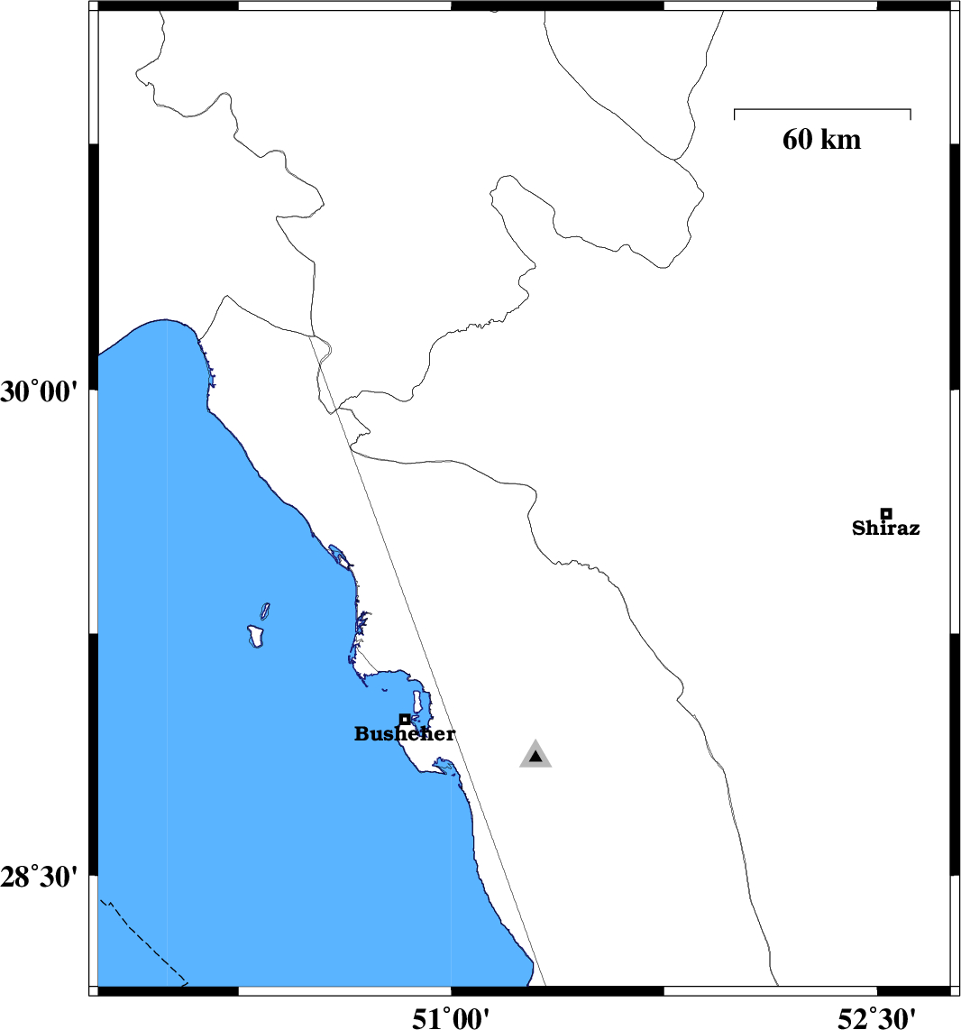 | 2015/11/30 | 12:49:52.1 | 16:19:52.1 | 29.647 | 51.288 | 14 | ML3.1 | Bushehr Province, 35 km -West of Kazerun |