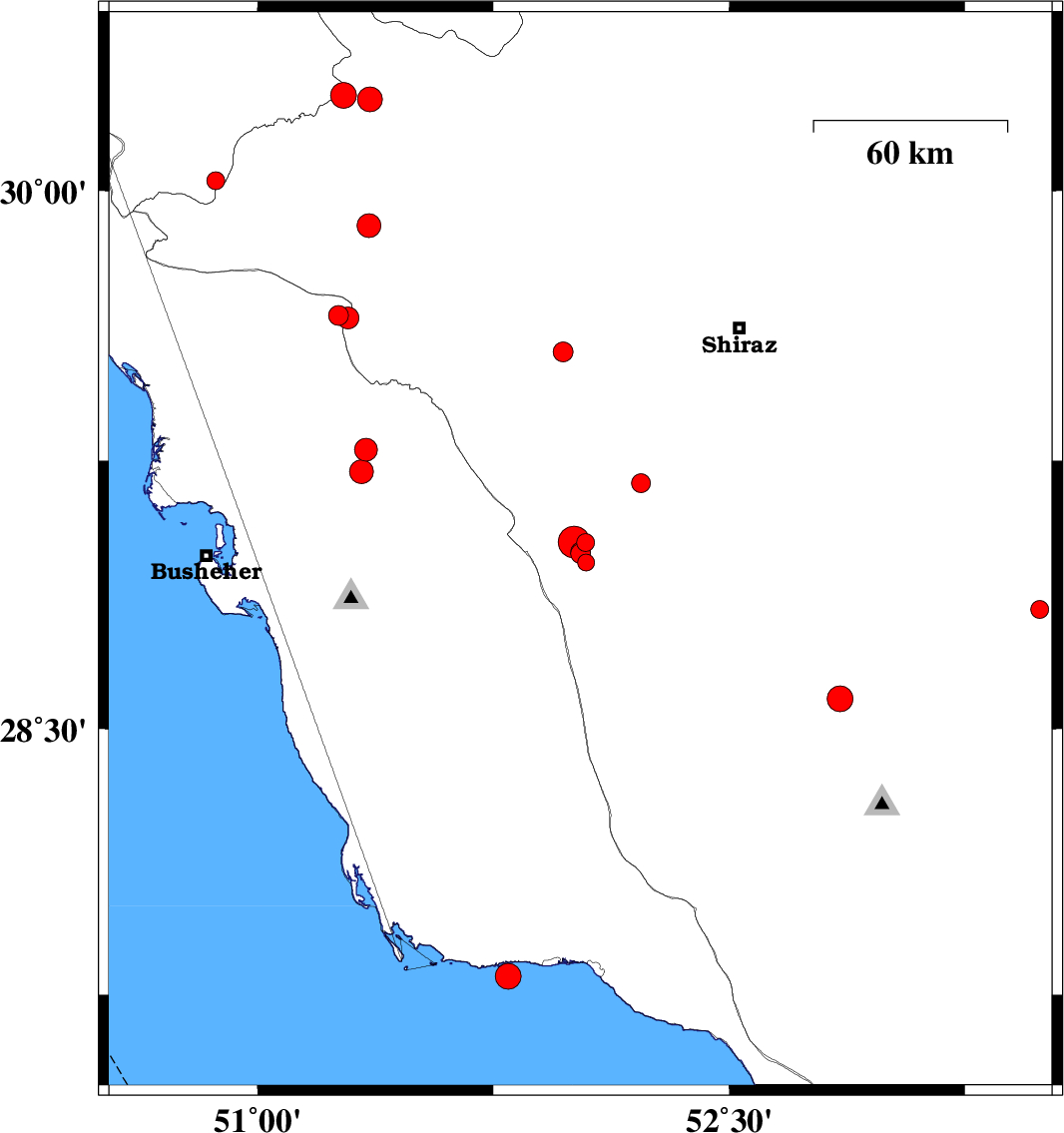 2015/12/04 20:44:55.5 00:14:55.5 28.99152.02718 ML2.8 Fars Province, 15 km North of Farashband