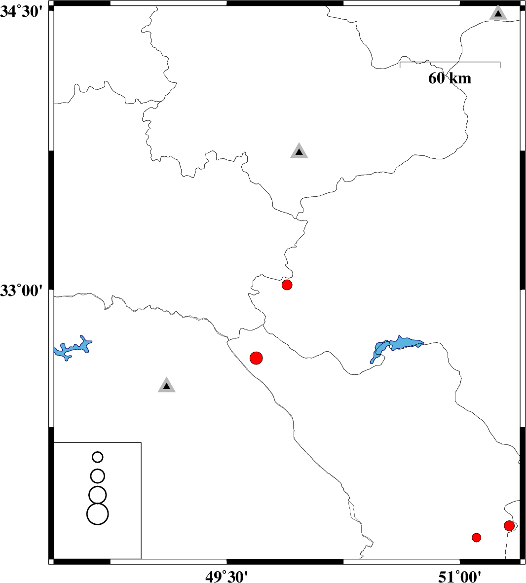 | 2015/12/07 | 14:24:33.1 | 17:54:33.1 | 33.026 | 49.887 | 6 | ML3 | Esfahan Province, 23 km -West of Fereydunshahr | ||