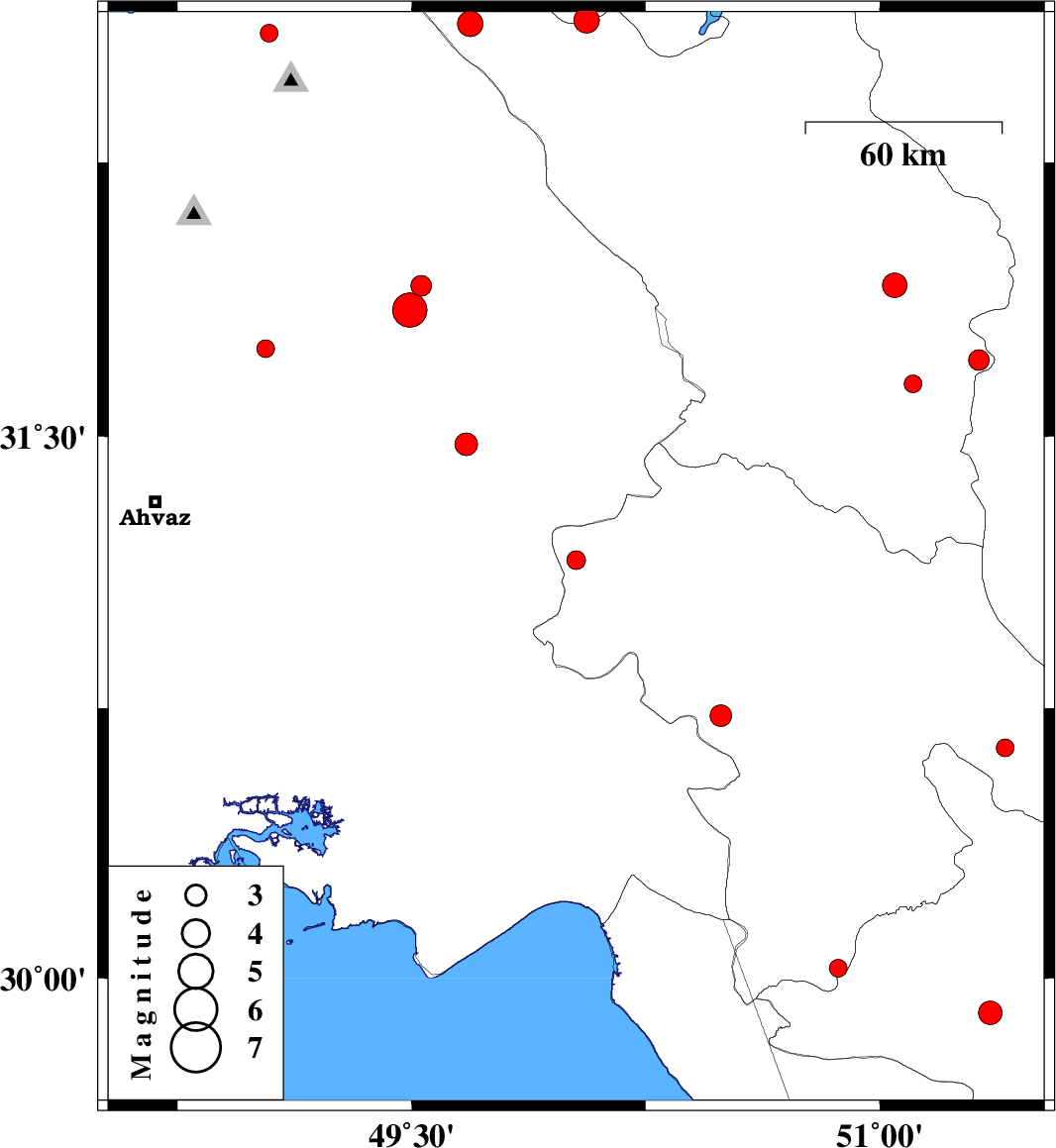| 2015/11/29 | 00:21:55.1 | 03:51:55.1 | 31.913 | 49.53 | 14 | ML3 | Khoozestan Province, 22 km -East of Masjed Soleyman | ||