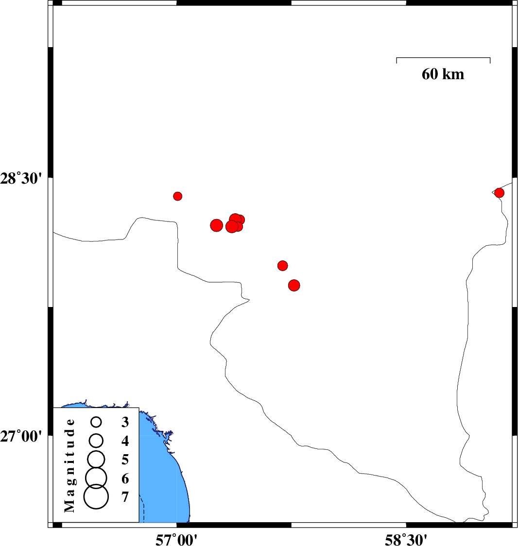| 2015/12/27 | 03:48:56.0 | 07:18:56.0 | 27.99 | 57.692 | 14 | ML3 | Kerman Province, 4 km of Kahnuj | ||