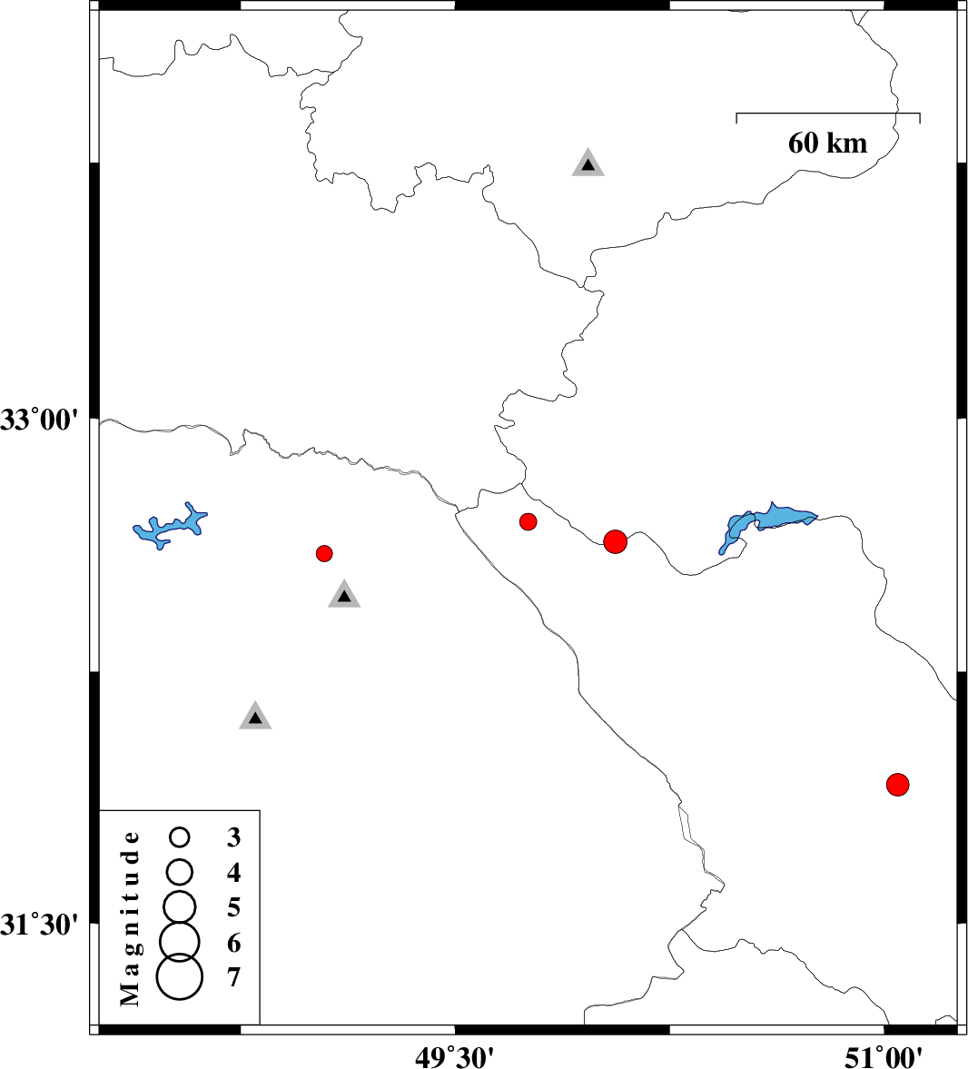 | 2015/12/21 | 10:30:45.6 | 14:00:45.6 | 31.914 | 51.048 | 14 | ML3.5 | Chaharmahal Bakhtiari Province, 23 km -West of Borujen |