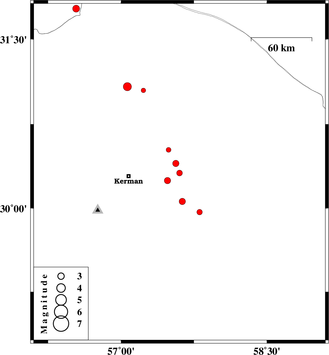 | 2015/12/01 | 09:03:21.3 | 12:33:21.3 | 30.248 | 57.478 | 14 | ML3 | Kerman Province, 39 km -East of Kerman | ||