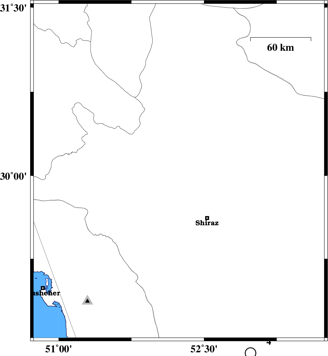 | 2016/01/06 | 06:10:57.5 | 09:40:57.5 | 29.132 | 51.298 | 14 | ML3.5 | Bushehr Province, 17 km South of Borazjan | ||