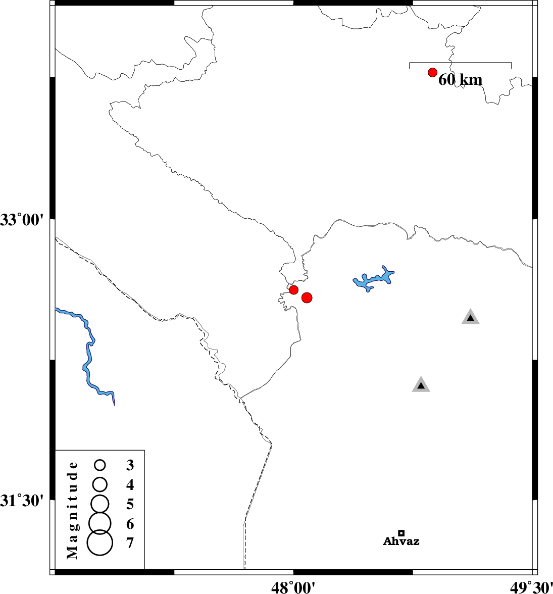 | 2016/01/06 | 13:14:03.3 | 16:44:03.3 | 32.582 | 48.083 | 14 | ML2.9 | Khoozestan Province, 29 km North-West of Andimeshk | ||