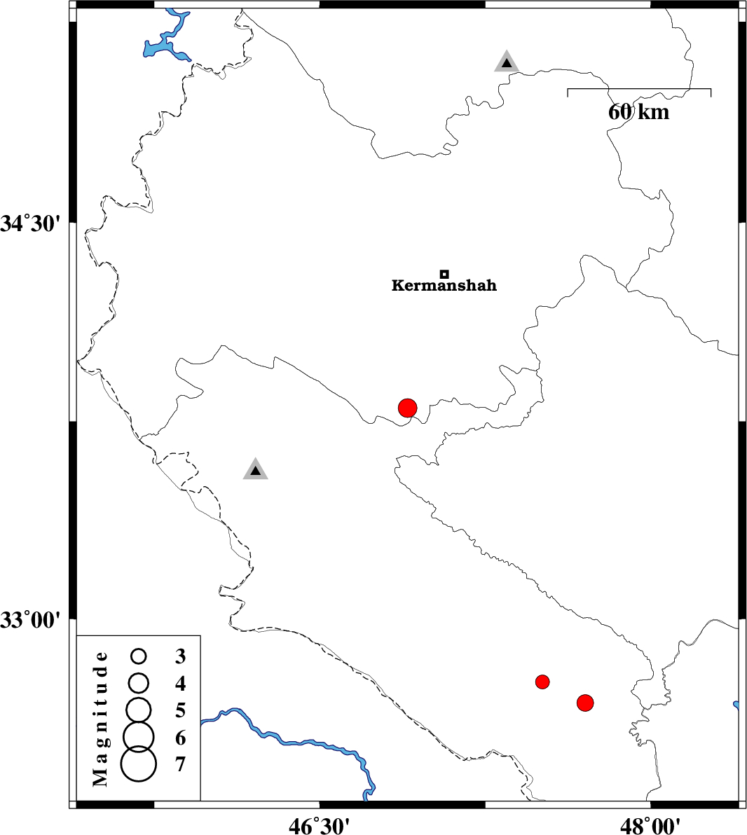| 2016/01/23 | 04:20:22.5 | 07:50:22.5 | 33.801 | 46.898 | 14 | ML3.8 | Kermanshah Province, 33 km -East of Sar Ableh | ||