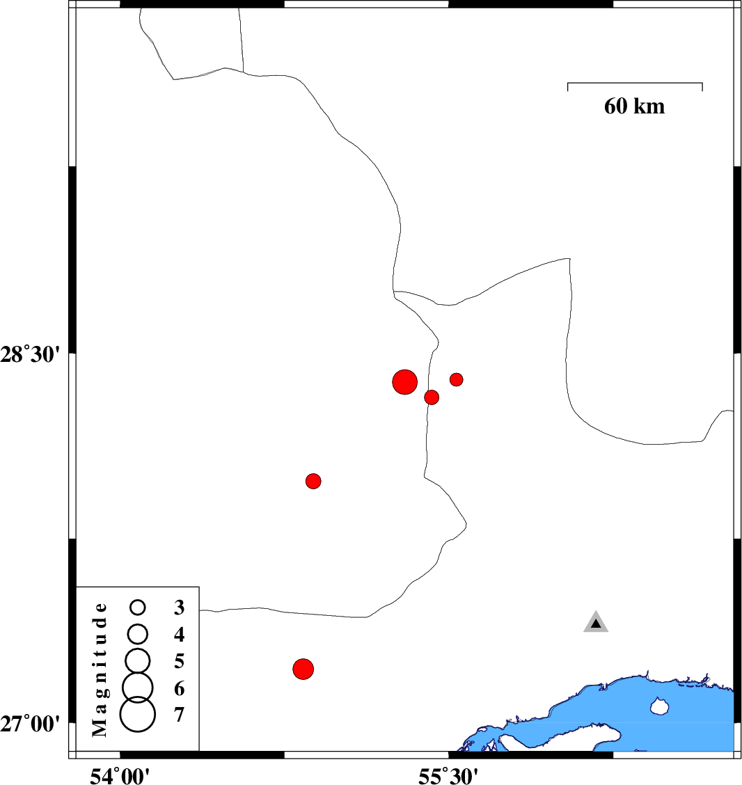| 2016/01/18 | 07:50:52.6 | 11:20:52.6 | 27.982 | 54.881 | 18 | ML3.1 | Fars Province, 63 km North-East of Lar |