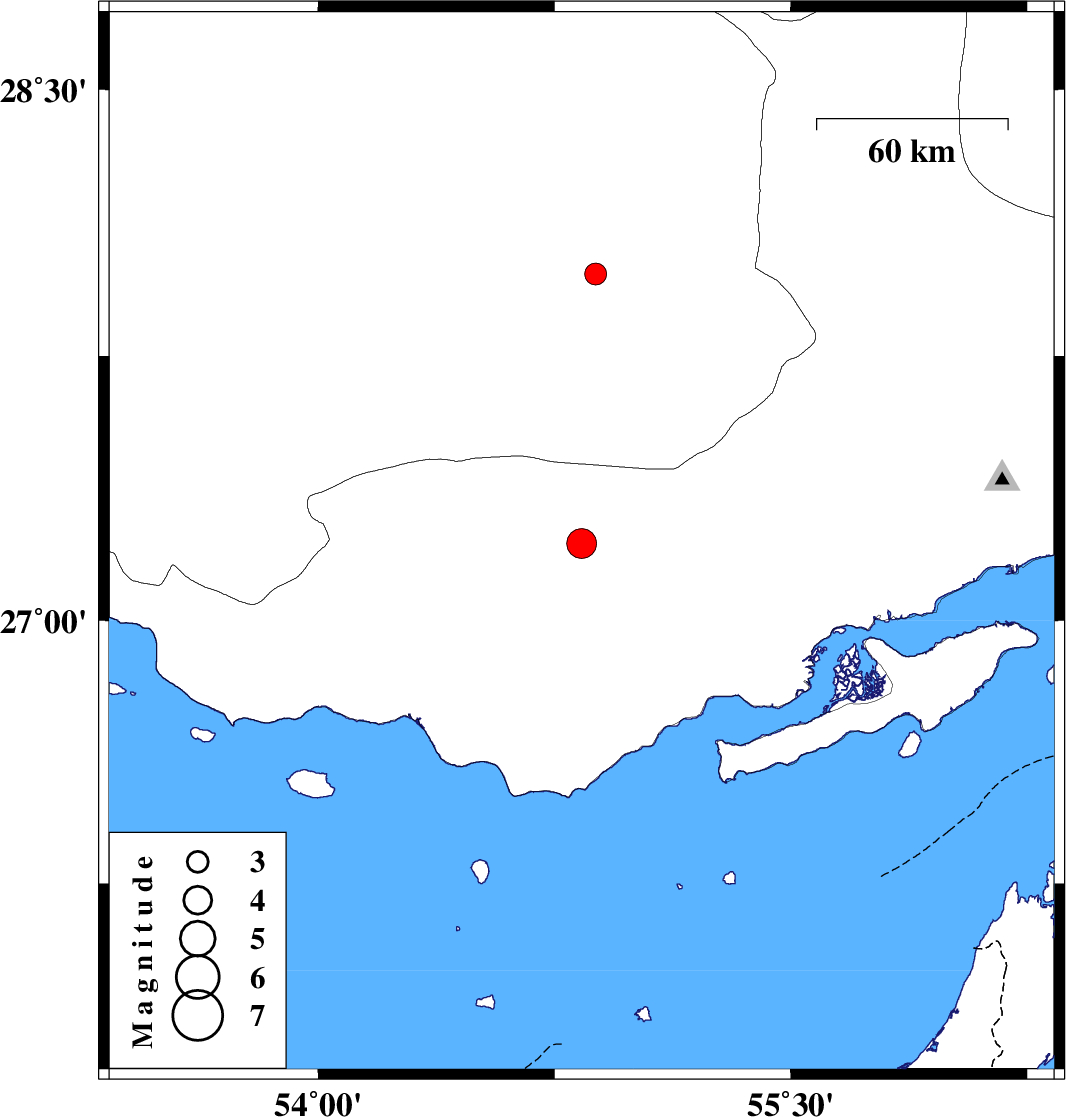 | 2016/01/18 | 07:50:52.6 | 11:20:52.6 | 27.982 | 54.881 | 18 | ML3.1 | Fars Province, 63 km North-East of Lar |