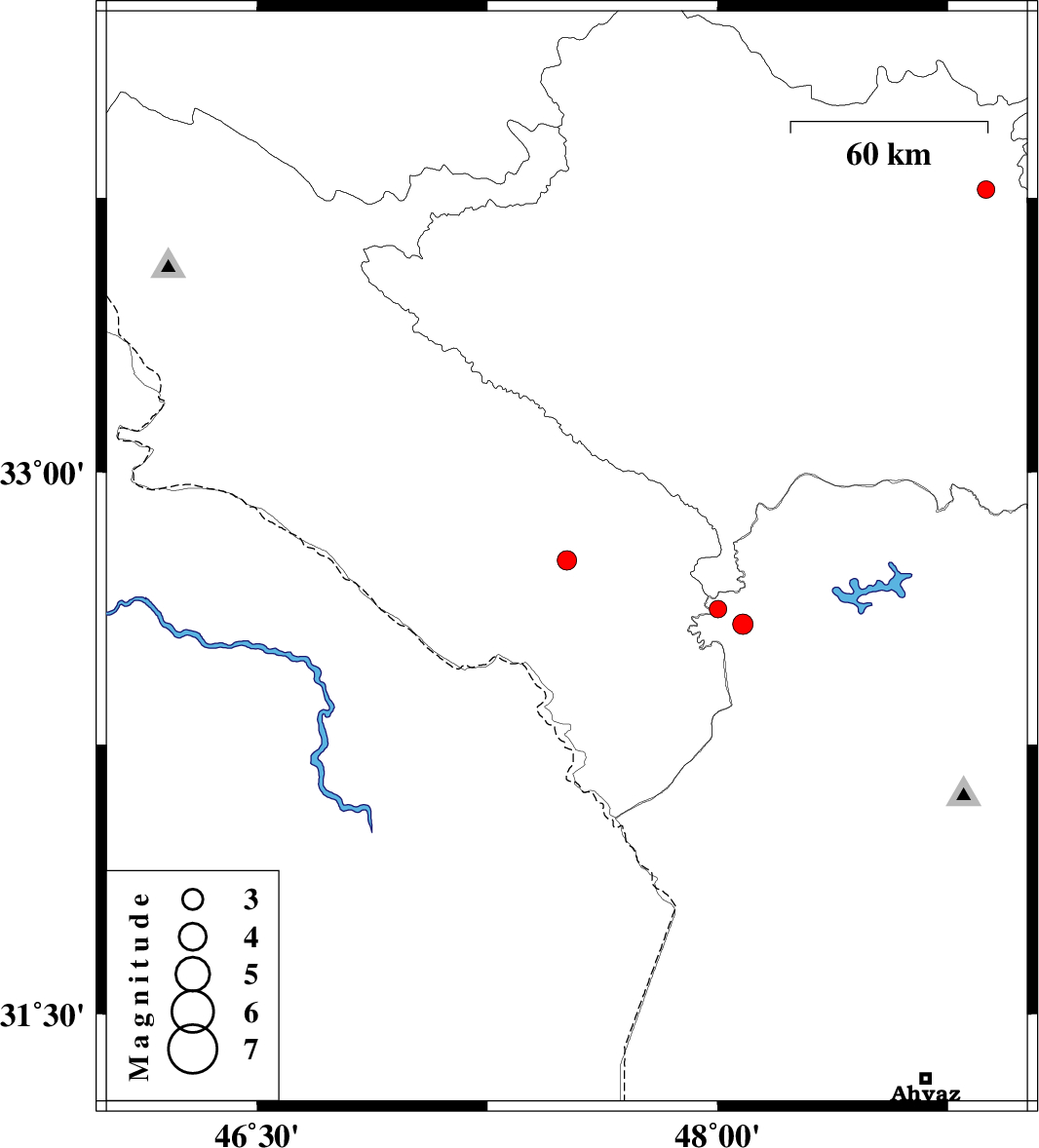 | 2016/01/06 | 06:41:23.4 | 10:11:23.4 | 32.624 | 48.001 | 14 | ML2.5 | Khoozestan Province, 38 km North-West of Andimeshk | ||