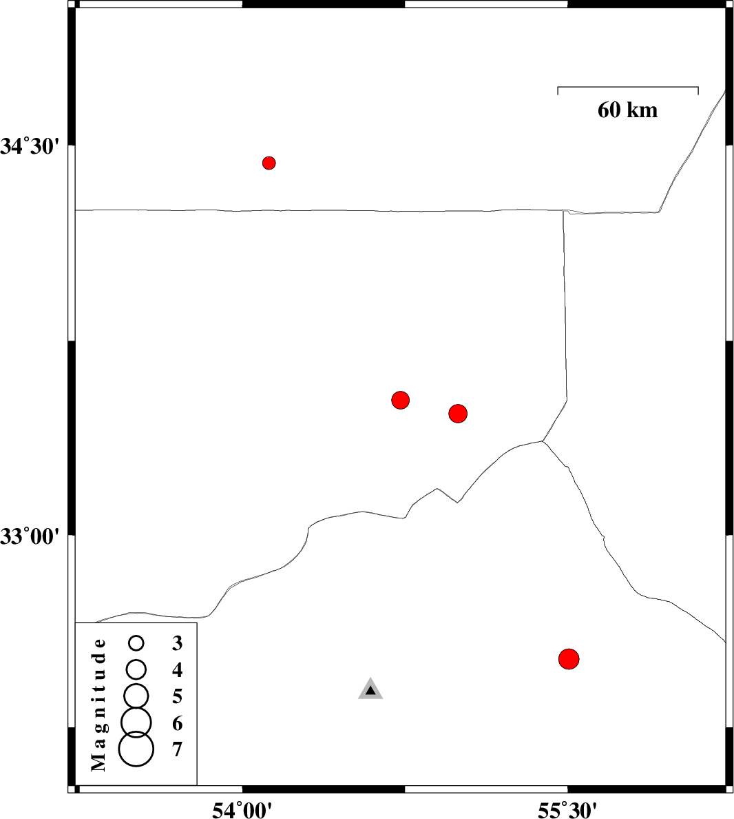 | 2016/02/23 | 15:38:14.8 | 19:08:14.8 | 33.522 | 54.729 | 15 | ML3.7 | Esfahan Province, 150 km North-East of Ardakan | ||