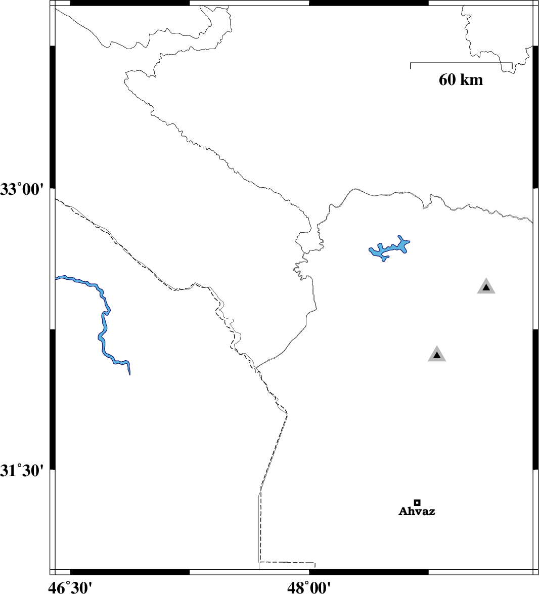 | 2016/03/06 | 01:23:06.6 | 04:53:06.6 | 32.048 | 48.658 | 14 | ML2.7 | Khoozestan Province, 18 km -West of Shushtar | ||