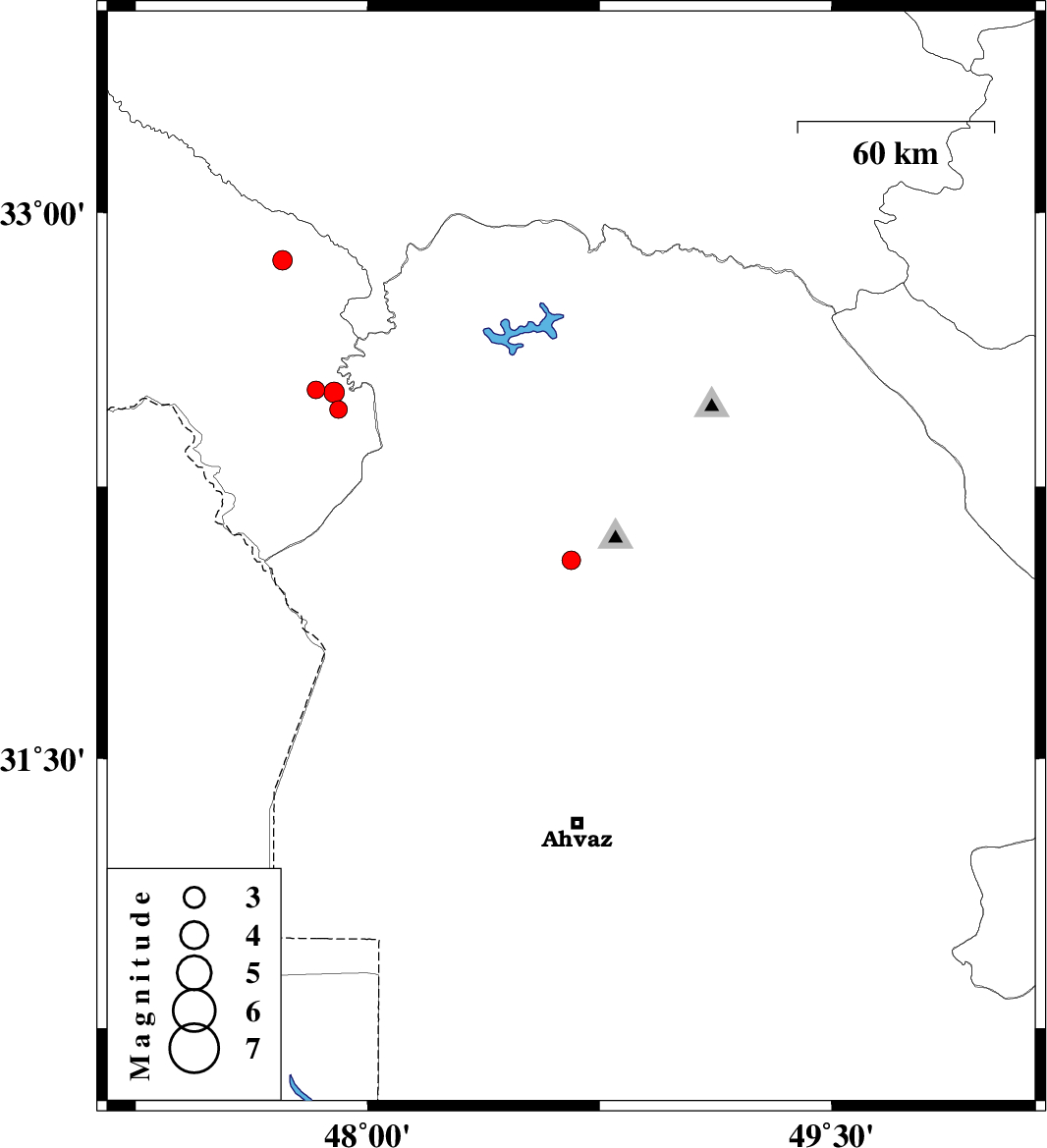 | 2016/03/06 | 01:23:06.6 | 04:53:06.6 | 32.048 | 48.658 | 14 | ML2.7 | Khoozestan Province, 18 km -West of Shushtar | ||