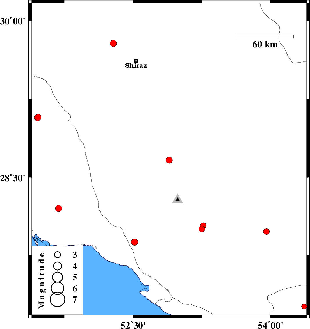 | 2016/02/22 | 05:30:40.8 | 09:00:40.8 | 29.786 | 52.284 | 14 | ML3.3 | Fars Province, 30 km North-West of Shiraz | ||