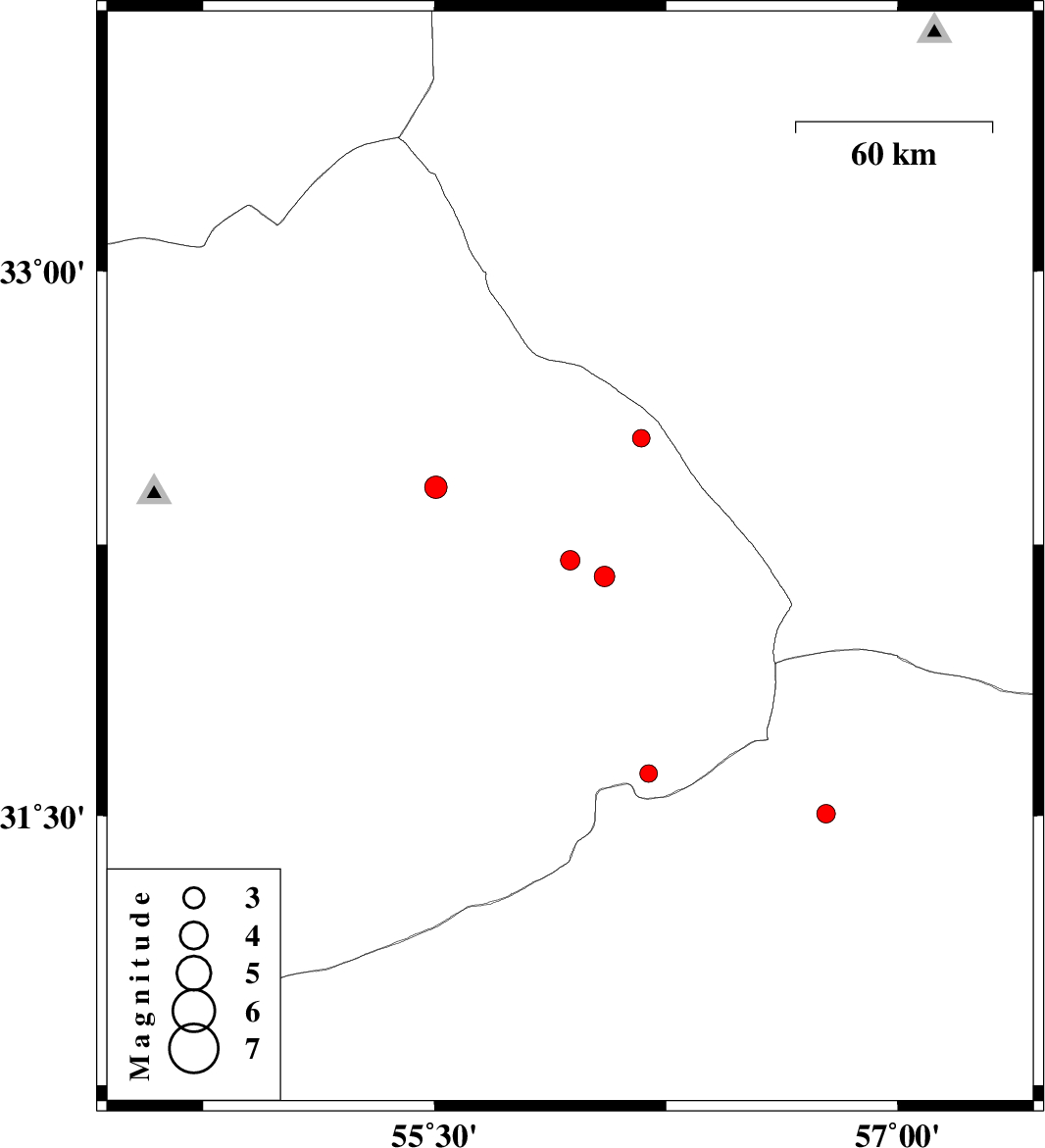 | 2016/03/14 | 06:52:16.0 | 10:22:16.0 | 32.408 | 55.504 | 14 | ML3.2 | Yazd Province, 90 km North-East of Bafq |