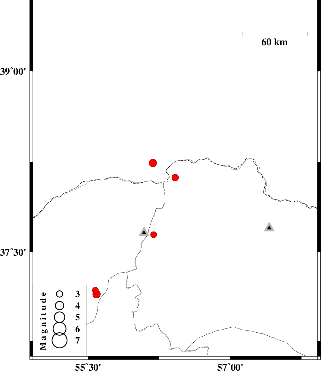 | 2016/03/13 | 03:03:19.6 | 06:33:19.6 | 37.146 | 55.589 | 15 | ML3.6 | Golestan Province, 20 km -East of Minodasht | ||