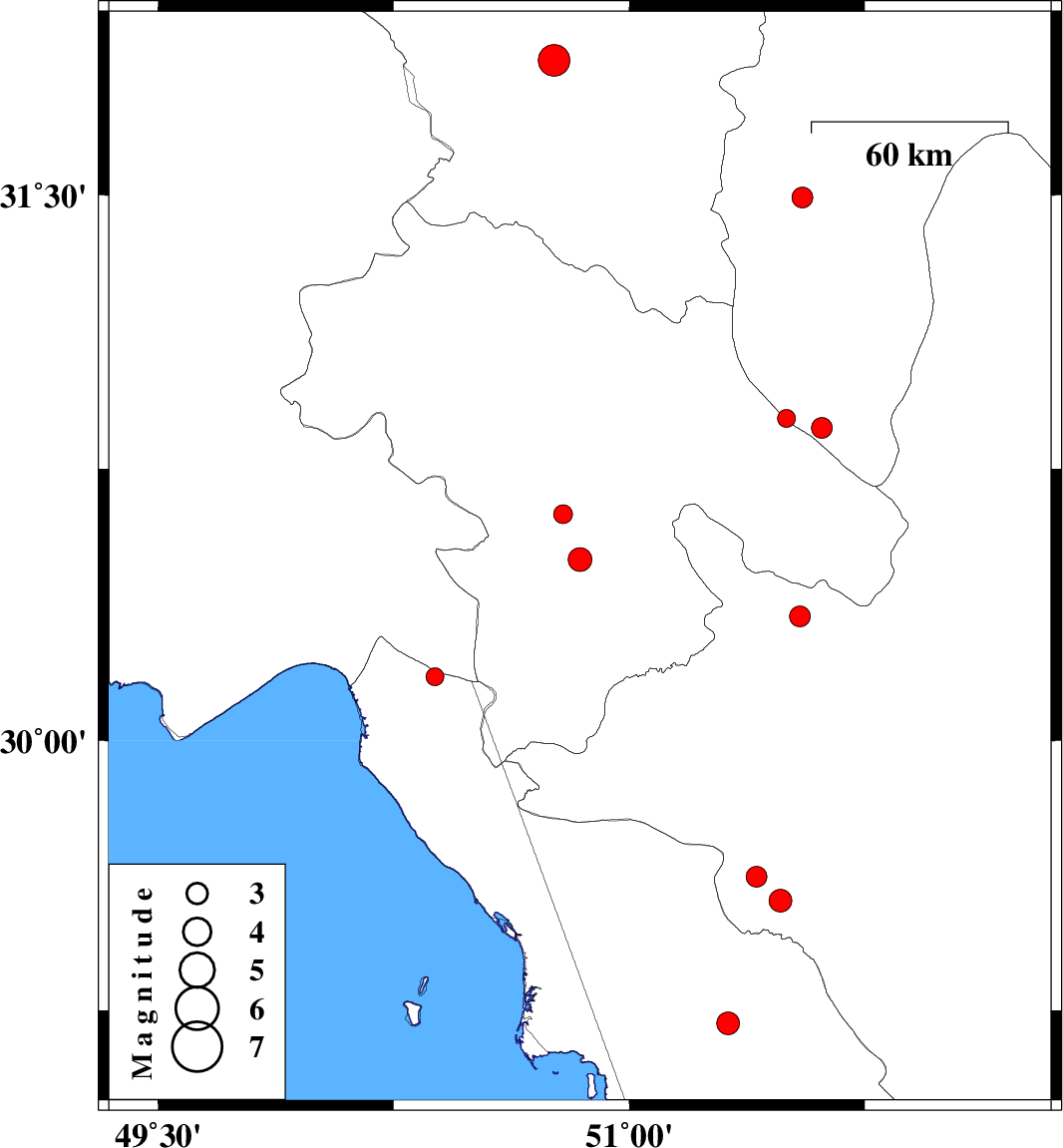 | 2016/04/09 | 08:13:09.5 | 12:43:09.5 | 30.862 | 51.613 | 14 | ML2.9 | Esfahan Province, 15 km -East of Sisakht | ||