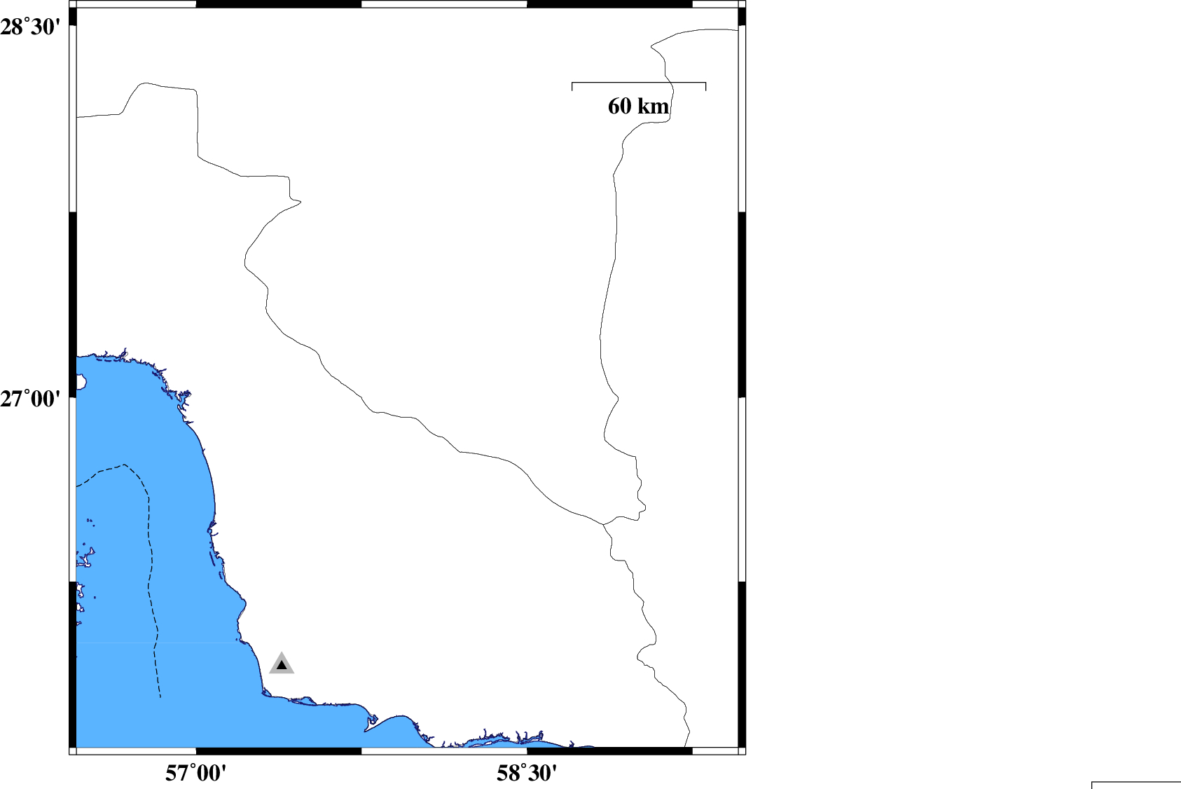 | 2016/04/14 | 07:16:52.5 | 11:46:52.5 | 27.071 | 57.957 | 14 | ML3 | Kerman Province, 59 km South-East of Manujan | ||