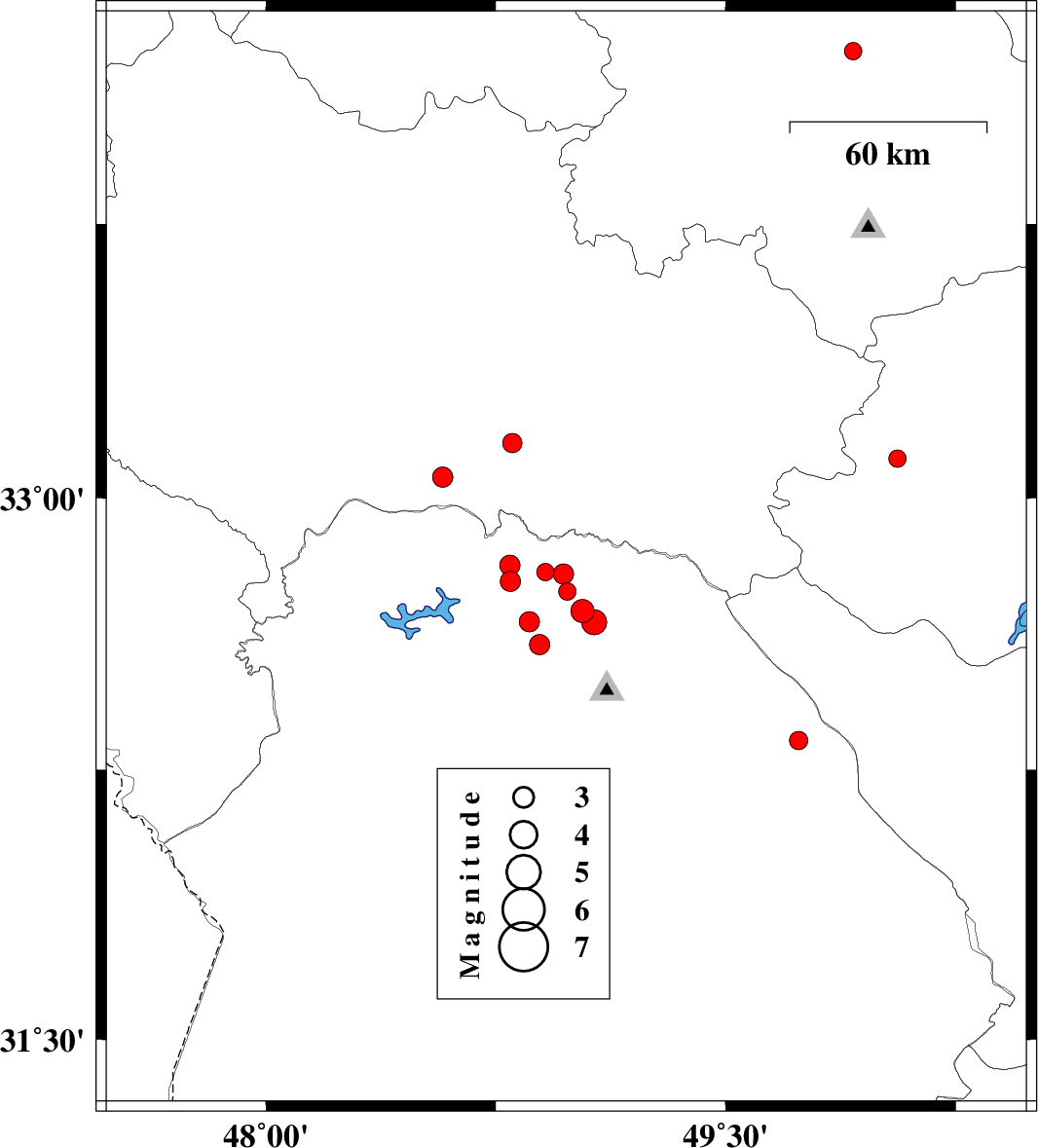 2016/03/08 | 19:07:27.9 | 22:37:27.9 | 32.533 | 47.717 | 14 | ML2.9 | Ilam Province, 46 km South-East of Dehloran | ||