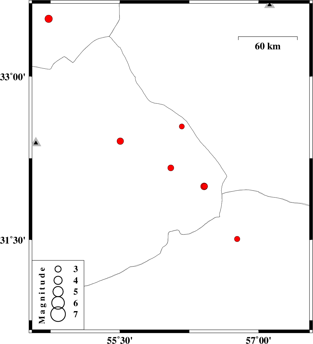 | 2016/02/23 | 15:38:14.8 | 19:08:14.8 | 33.522 | 54.729 | 15 | ML3.7 | Esfahan Province, 150 km North-East of Ardakan |