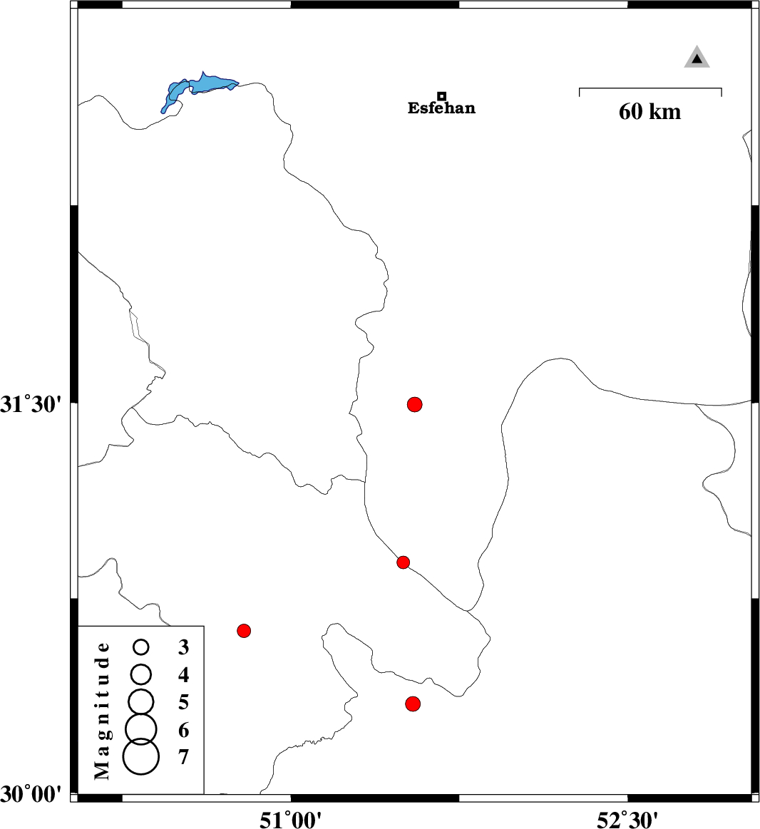 | 2016/03/20 | 06:28:42.2 | 09:58:42.2 | 31.493 | 51.551 | 15 | ML3 | Esfahan Province, 9 km of Semirom | ||