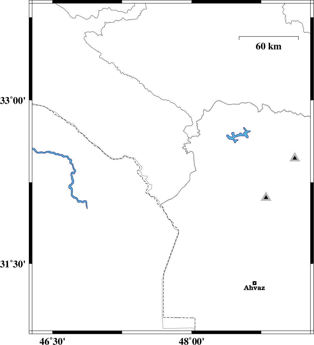 | 2016/03/06 | 01:23:06.6 | 04:53:06.6 | 32.048 | 48.658 | 14 | ML2.7 | Khoozestan Province, 18 km -West of Shushtar | ||